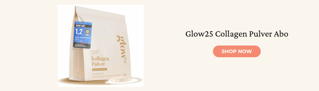 Kollagenpulver sind in aller Munde. Ich nutze selbst seit über zwei Jahren dieses hier und bin mir ganz sicher: Es unterstützt absolut meinen Glow! Ich trinke jeden Morgen meine “Glow Coffee” und bin überzeugt, dass es hilft. Ihr könnt das Glow25 Kollagen in allen warmen und kalten Getränken mischen und das auch noch ohne einen unangenehmen Nachgeschmack.