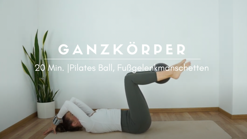 20 Minuten Ganzkoerper Pilates Workout ohne Equipment (optional mit Fussgelenkmanschetten).